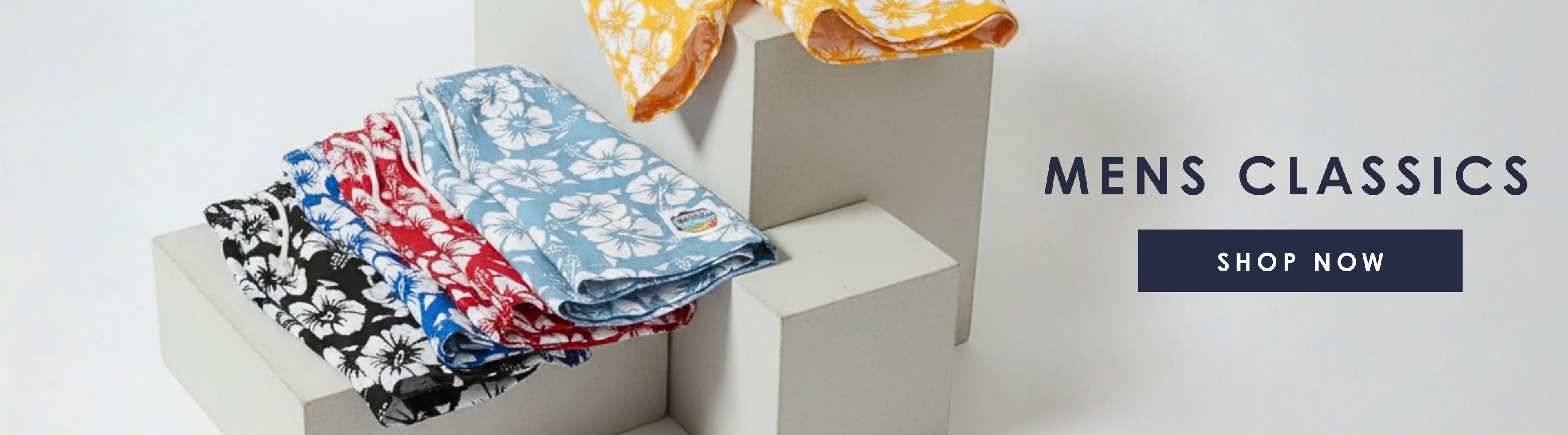 Mens Classic Shorts - Hibiscus Tri Colour-Navy Sun White