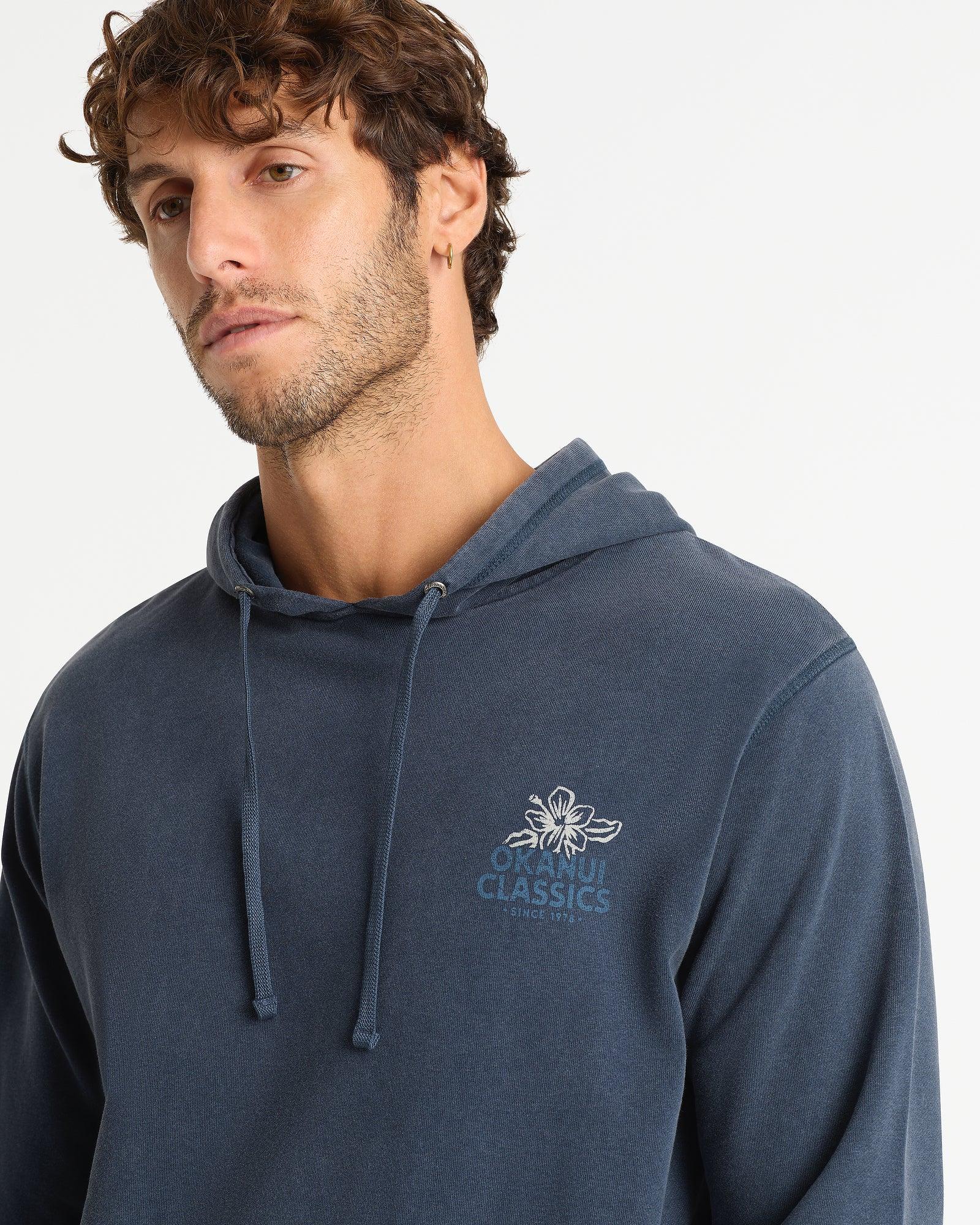 The perfectly weighted cool weather Okanui Original Hoodie in Washed Navy, is a must have item this season. High quality, easy styling, the perfect piece to be your go to hoodie this season! Made from 100% premium cotton, this is set to be the comfiest piece of clothing you own.